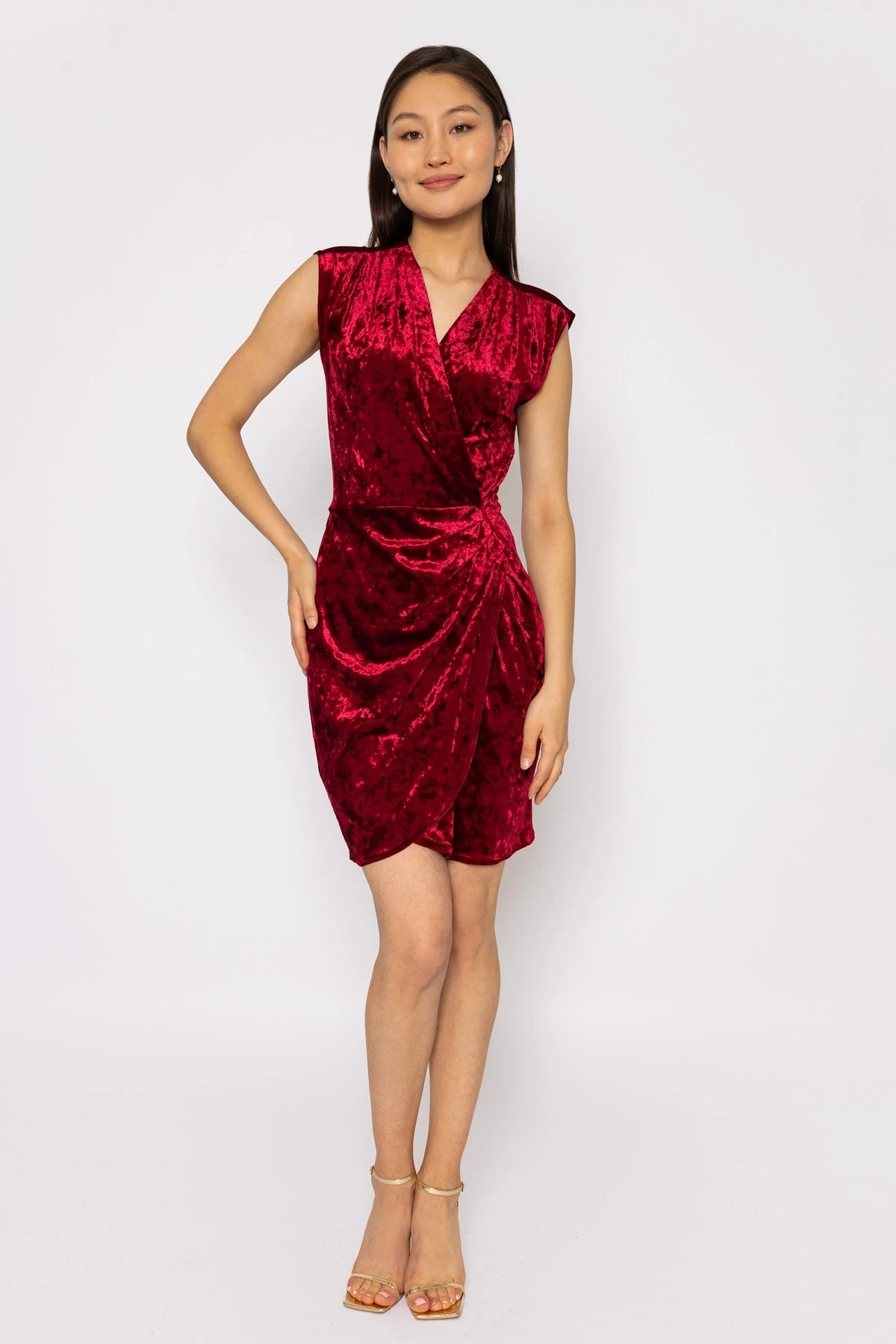 Velour mini dress in red by J’aime la Vie. Perfect for partywear, this dress is sure to be a timeless addition to your wardrobe.
