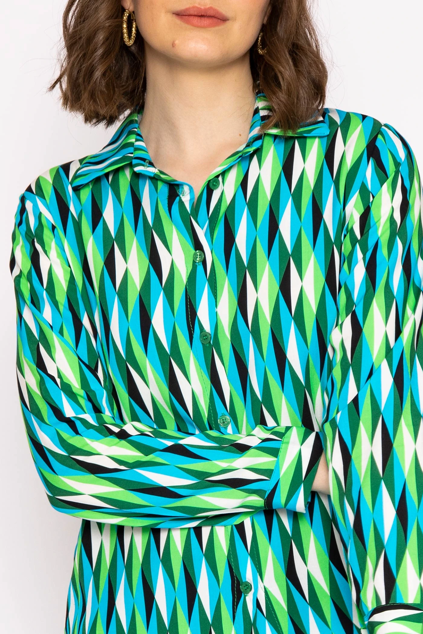Shirt in green print by Rowen Avenue.