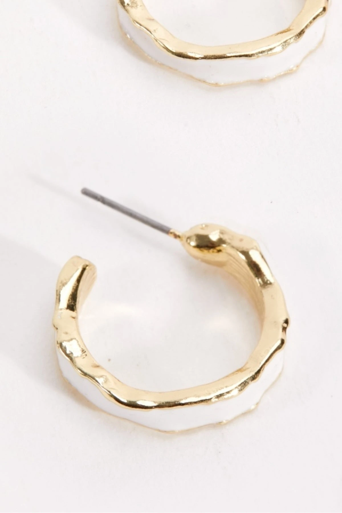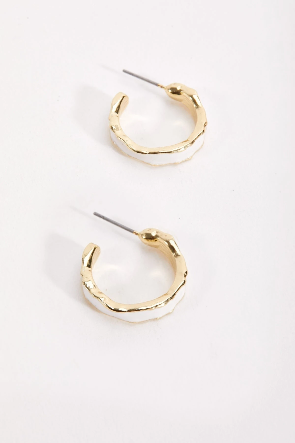 White and Gold Hoop Earrings by Soul Jewellery. Perfect for summer weddings, holiday and city break outfits, these ladies hoop earrings will add a touch of elegance and glamour to any outfit.