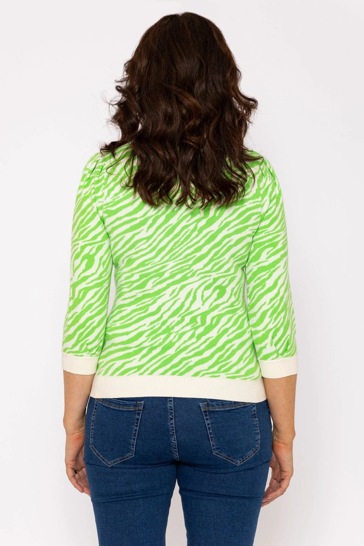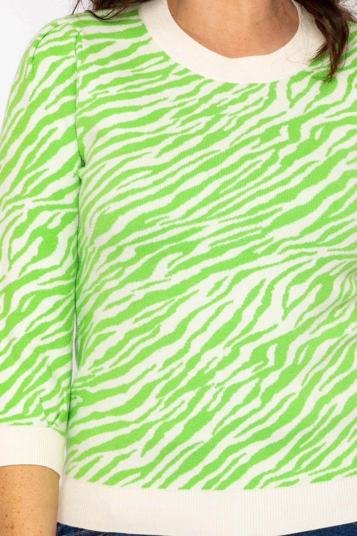 Super soft jumper in green zebra print by Kelly & Grace Weekend. This comfortable and soft knit is the perfect pick for everyday wear.