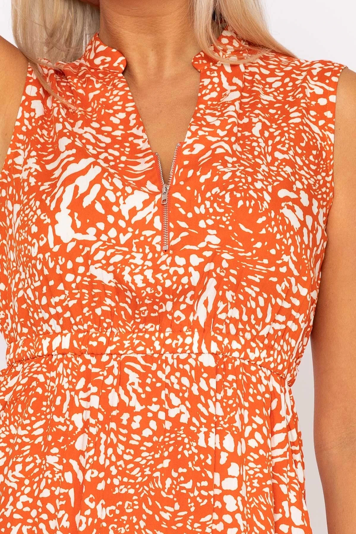 Orange lightweight viscose fabric mini dress by Rowen Avenue. This zip front detail dress will take you from summer days to summer nights and is a holiday wardrobe essential.Â